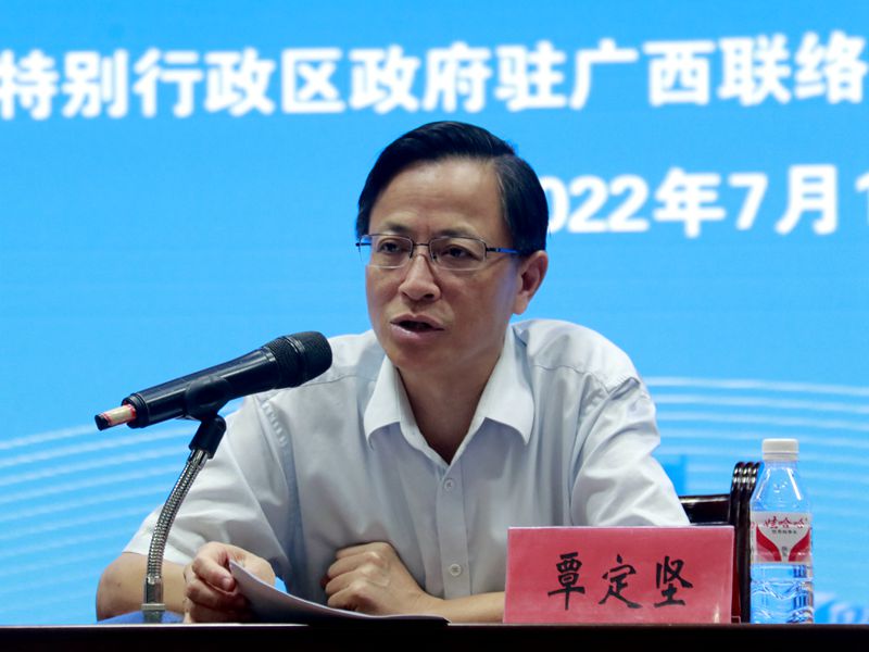 覃定坚在讲话指出:今年是党的二十大召开之年,是香港回归祖国25周年、澳门回归祖国23周年。在这特殊而关键的一年,开展2022年“桂港澳青少年交流计划”广西特色考察活动,意义重大、影响深远,希望港澳青少年心怀伟大祖国,大力弘扬以爱国爱港爱澳为核心的主流价值观,积极投身“一国两制”伟大实践,让爱国爱港爱澳精神薪火相传、生生不息;主动融入国家发展大局,在融入国家发展大局中实现自身更好发展,共同担当起推动港澳长期繁荣稳定和实现中华民族伟大复兴的时代责任;把壮乡当故乡,多为广西高质量发展牵线搭桥、献计出力,助推桂港澳交往合作迈上新台阶。
