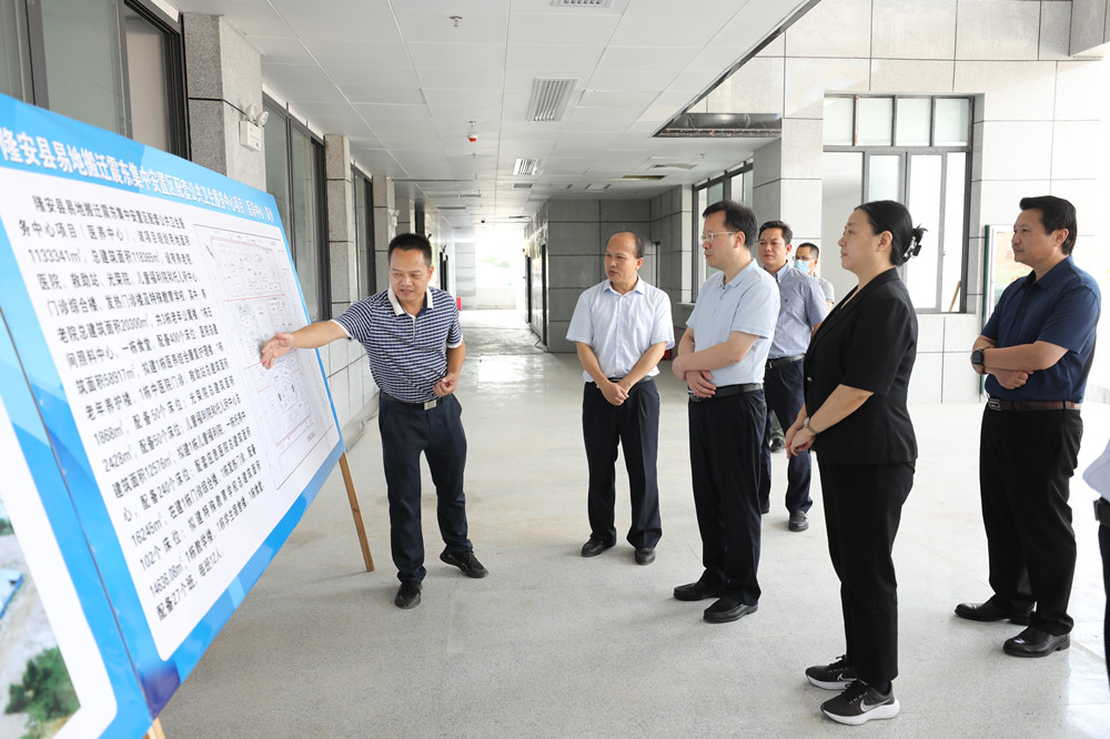 莫锦荣一行还来到隆安县易地扶贫搬迁震东集中安置区配套公共卫生服务中心,就医养中心项目建设情况进行了调研。