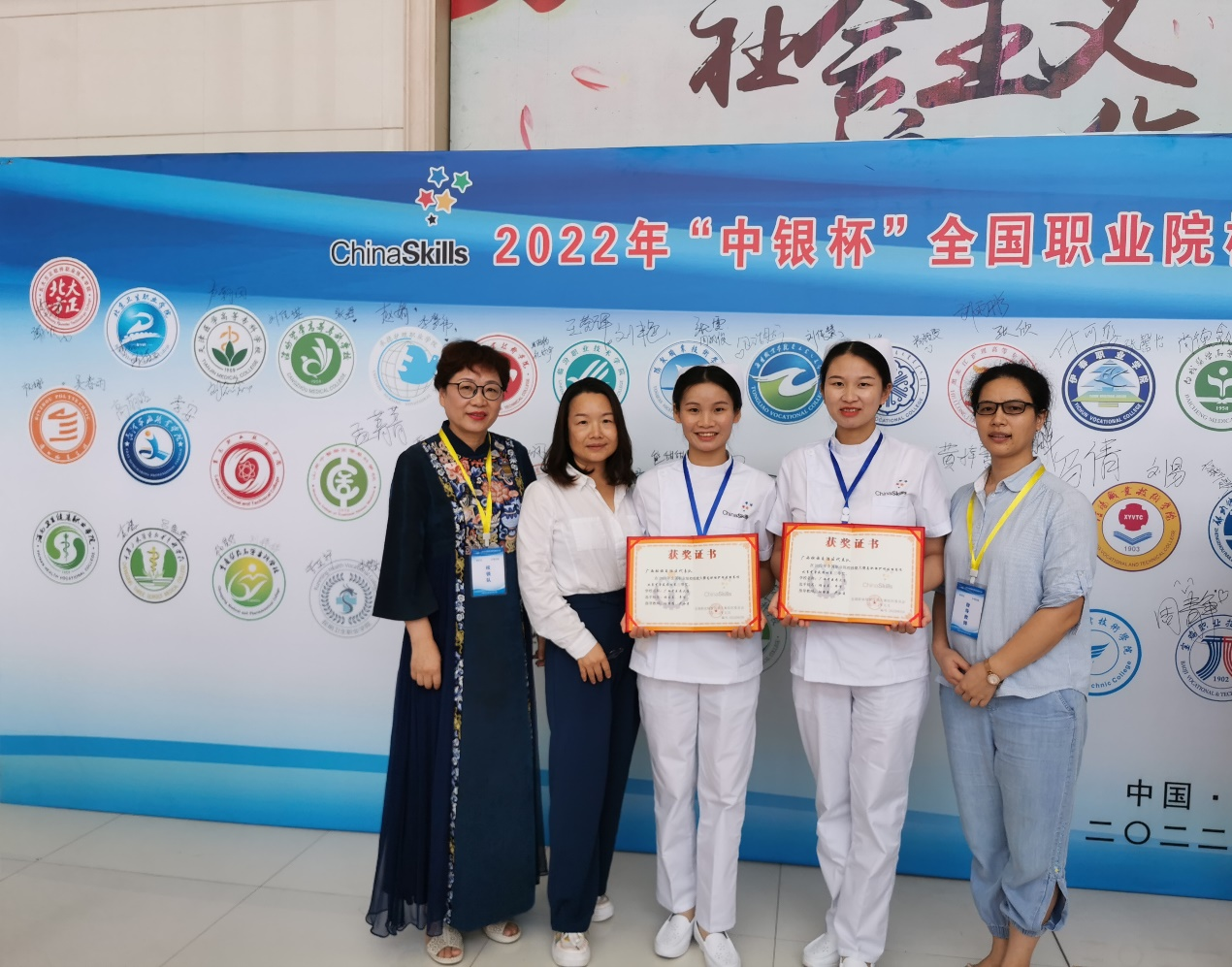 2022年8月17日至21日,2022年“中银杯”全国职业院校技能大赛高职组“护理技能”赛项在山东省济南市莱芜职业技术学院举行,Beat3652019级高职护理专业的韦倩和杨生兰同学代表广西壮族自治区参赛,韦倩和杨生兰同学努力拼搏、永不言败,从来自全国30个省、自治区、直辖市66所院校代表队的132名选手中脱颖而出,荣获团体三等奖,真正实现了用竞赛点亮人生,用技能成就梦想。为学校争光添彩,为广西的职业教育铸就辉煌。