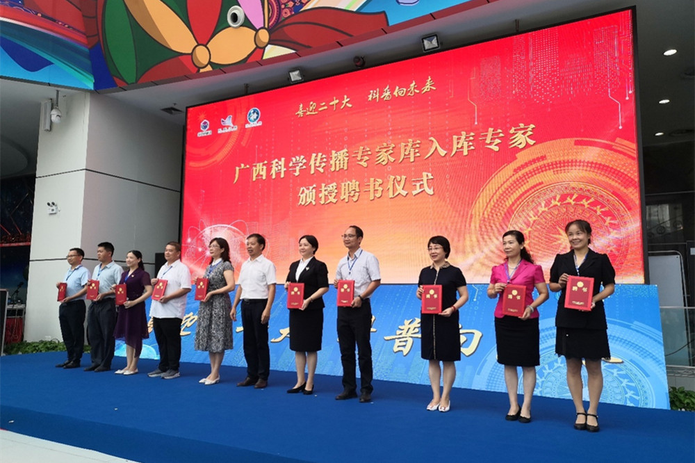 启动仪式上,还举行了广西科学传播专家库入库专家颁授聘书仪式,姚春成为广西科学传播专家库入库专家,现场接受聘书。