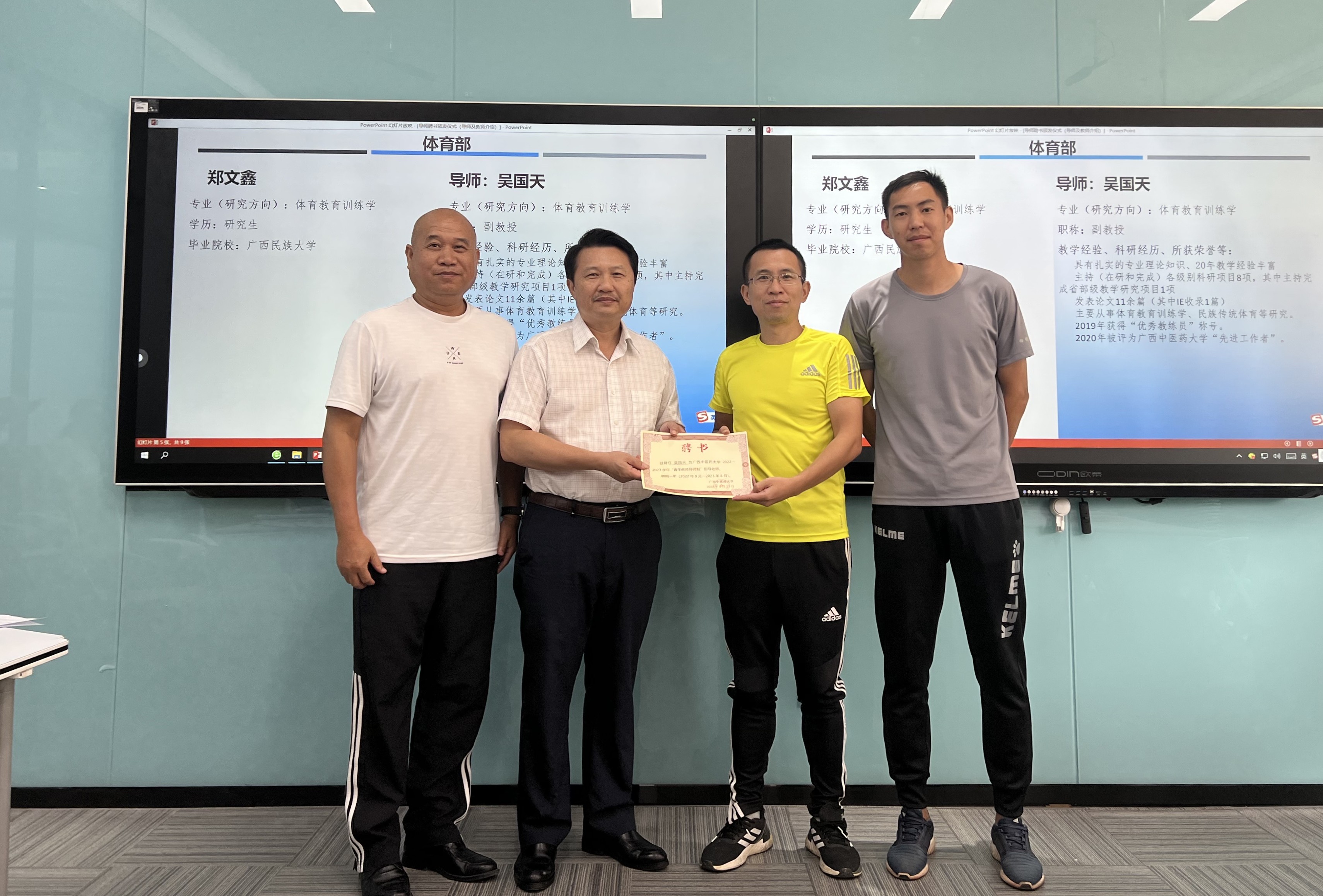 会上,教师教学发展中心副主任朱珠介绍了历年青年教师导师制培养情况以及新入职教师准入和导师制培养互补衔接的制度要求。随后,青年教师所属学院分管教学领导、导师和青年教师签订了《青年教师导师制培养责任书》,并由庞宇舟为8位导师颁发导师聘书。