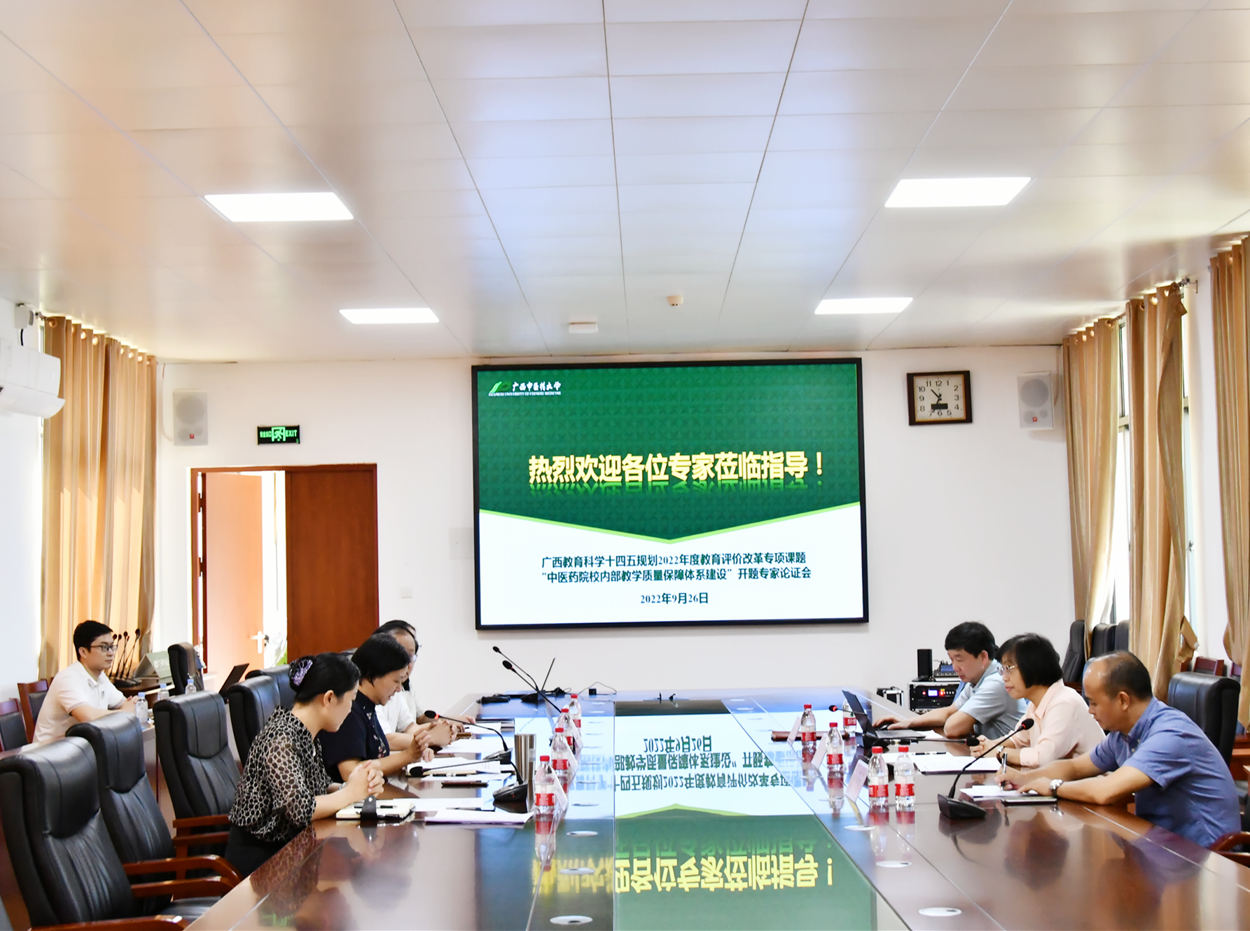 9月26日上午,广西教育科学“十四五”规划2022年度教育评价改革专项重点课题《中医药院校内部教学质量保障体系建设》开题论证会在合德楼525会议室举行。自治区教育厅高教处处长李美清、广西医科大学教务处处长刘登宇、南宁师范大学教务处处长莫运佳担任本次开题论证校外专家,课题组负责人、学校校长姚春及其他课题组主要成员参加论证会。