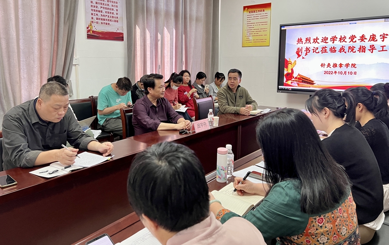 10月10日下午,学校党委副书记庞宇舟莅临针灸推拿学院检查指导工作,针灸推拿学院领导班子及教师参加调研会。