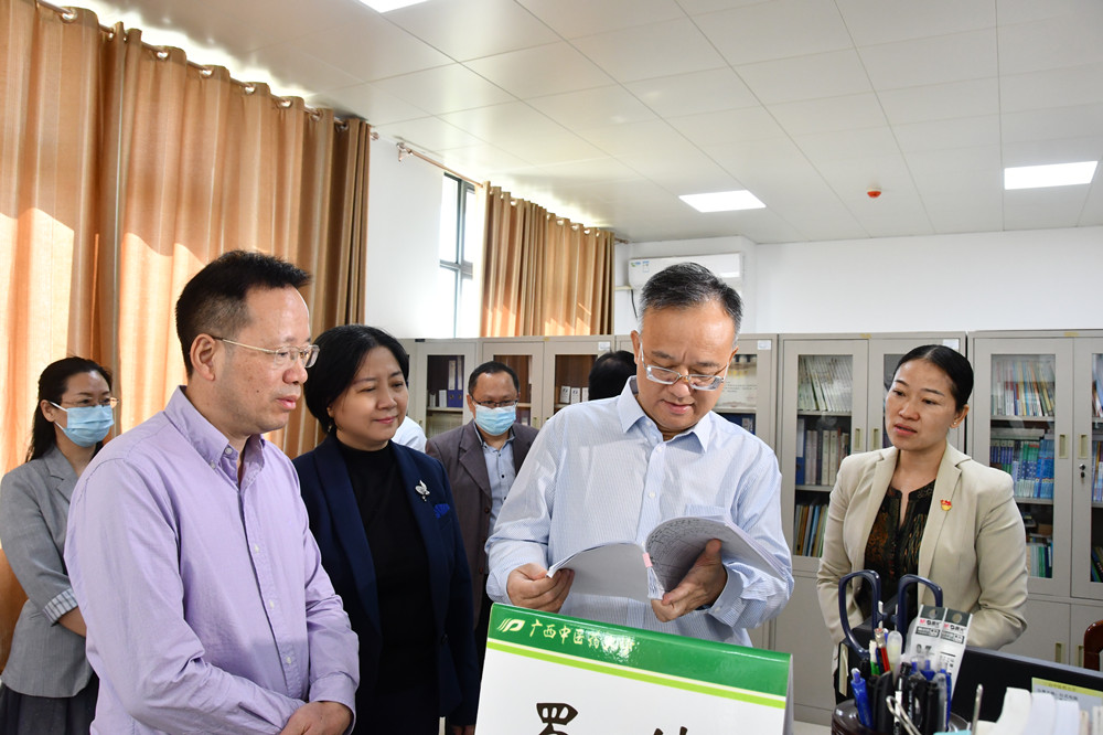 黄俊华一行先后来到学校教师教学发展中心、科学实验中心、教务处等地,认真了解了学校师资队伍培养、高层次人才引进、科研平台建设、“桂十味”研究、党风校风教风学风等方面的具体情况,听取了莫锦荣、姚春等关于学校发展情况的汇报。