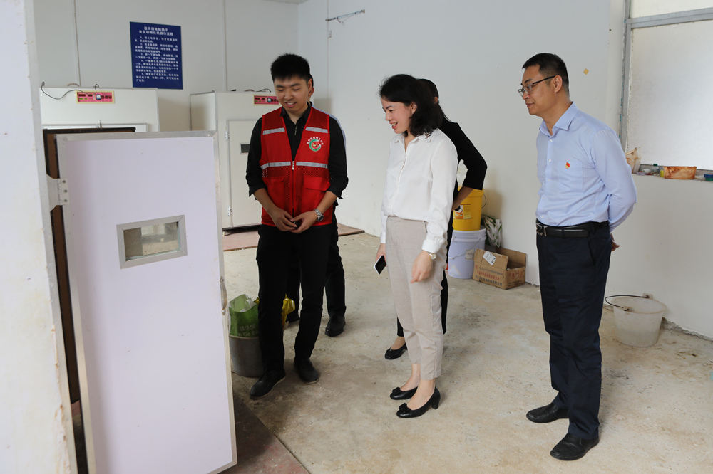 覃宇环一行还来到隆安县南圩镇联伍村召开“Beat365中国唯一官方网站乡村振兴定点帮扶工作座谈会”,实地考察了“Beat365中国唯一官方网站健康帮扶基地”和联伍村肉鸽养殖产业示范园,隆安县南圩镇镇长杨智乔等陪同参与系列活动。