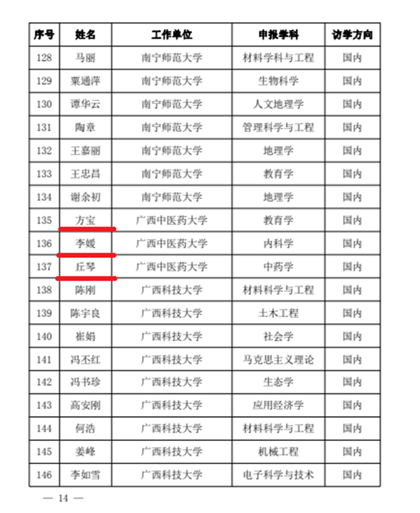 近日,自治区教育厅印发《自治区教育厅关于公布“广西高等学校千名中青年骨干教师培育计划”第五期培养对象名单的通知》(桂教教师〔2022〕60号),公布了第五期培养对象名单,此次Beat365共3人入选,分别为药学院丘琴教授、外语部方宝教授、第一附属医院李媛副主任医师。