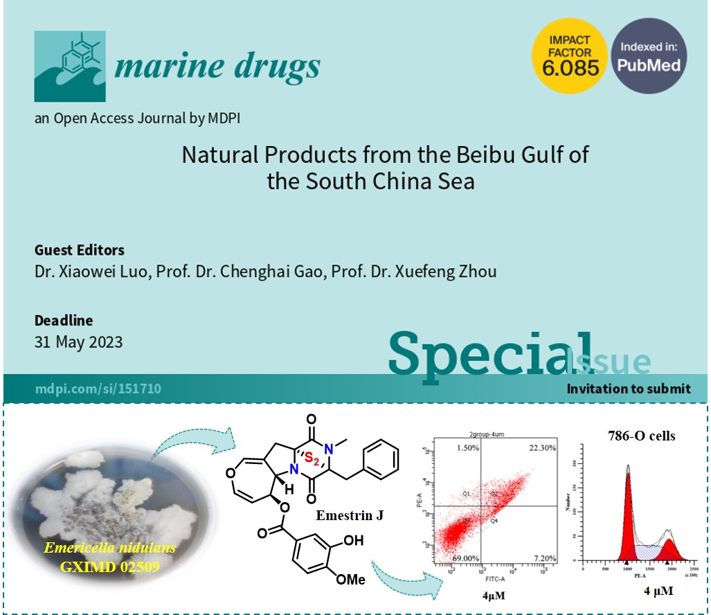 Beat365中国唯一官方网站海洋药物研究院/广西海洋药物重点实验室刘永宏/罗小卫研究团队,长期致力于北部湾海洋中药共附生微生物资源的勘探发掘及其活性物质研究,近期在广西涠洲岛海洋中药共附生微生物来源抗肿瘤活性代谢产物研究方面取得新进展。研究成果以第一单位分别发表在中科院二区期刊《海洋药物》(Maine Drugs, 2023, 21(1): 27; 2023, 21(2), 63)和《浙江大学学报(英文版)B辑》(Journal of Zhejiang University SCIENCE B, 2023)。