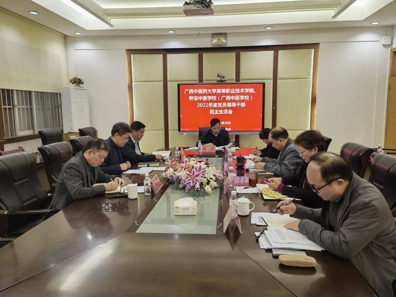 根据学校党委的统一部署,2月28日上午,高职院、附设中医学校党委在东葛校区一楼办公室召开了2022年度处级党员领导干部民主生活会。学校总会计师何刚亮、纪委副书记韦海英到会指导。高职院、附设中医学校党委书记蒋子华主持会议。