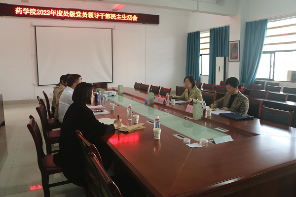 按照校党委统一部署,3月2日下午,药学院党委在达道楼A405召开2022年度处级党员领导干部民主生活会,学校党委常委、副校长冷静,正处级组织员、统战部副部长邬文燕到会指导。药学院党委书记蒋林主持会议,副书记李豫萍,党委委员、副院长秦华珍参加会议。