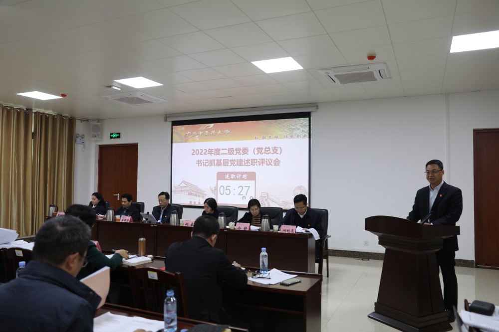3月31日上午,学校党委在仙葫校区合德楼401会议室召开2022年度二级党委(党总支)书记抓基层党建工作述职评议会议,对17个二级党委(党总支)书记抓基层党建、落实意识形态工作责任制、履行党风廉政建设主体责任等情况进行述职评议。学校党委书记莫锦荣,校长姚春,副书记庞宇舟、副校长冷静、纪委书记覃宇环、总会计师何刚亮及附属医院党建工作指导委员会成员,党务、行政部门负责人代表,“两代表一委员”代表、党员代表、教师代表、行风监督员等参加会议。会议由庞宇舟主持。
