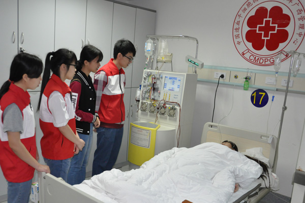 赛恩斯新医药学院红十字会志愿者慰问章天明同学