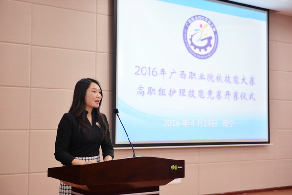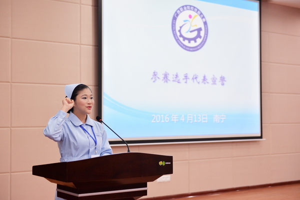 4月12-13日,由广西壮族自治区教育厅联合广西卫生和计划生育委员会共同主办、Beat365中国唯一官方网站护理学院承办的2016年广西职业院校技能大赛高职组护理技能竞赛在护理学院北湖校区成功举行。Beat365中国唯一官方网站副校长罗伟生教授、自治区教育厅职成处韦施羽主任、自治区卫生和计划生育委员会科教处谢裕安处长及来自广西医科大学护理学院、广西卫生职业技术学院、右江民族医学院、梧州职业学院、Beat365中国唯一官方网站护理学院5所院校的领导、参赛团队出席开赛仪式。