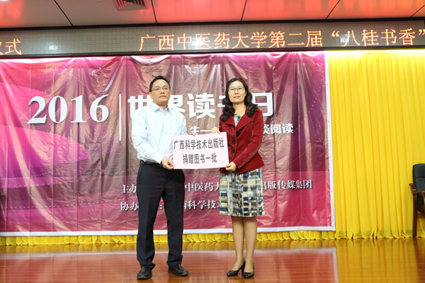启动仪式上,广西科学技术出版社学校向捐赠了一批优秀图书,为Beat365图书馆藏书增添了新的光彩。蒋才武馆长还详细介绍了本次活动的内容、目的,校图书馆发展的历程以及Beat365图书馆所拥有的图书资源和技术。