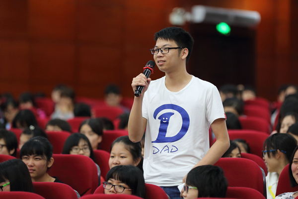 在名家谈阅读环节,董塔健,冷静,黄佩华,林寿宁,曹光哲、韦鸿学等领导嘉宾分别从写书人、教书人、出书人的角度以“阅读与成长”为主线,分享了阅读对自己人生的影响,向在场的青年学生推荐了好书。互动环节气氛热烈,现场同学们踊跃提问,嘉宾们对同学们读书的困惑作了解答。