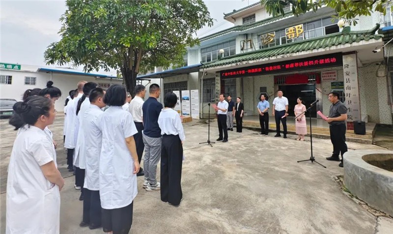 7月10日,为深入贯彻落实国家关于全面推进乡村振兴、加强基层医疗卫生服务体系建设的决策部署,推动优质医疗资源进一步扩容下沉,让更多老百姓在家门口享受三甲医院的优质服务,学校党委书记莫锦荣带队到隆安县南圩镇卫生院开展“轮值村医”健康帮扶提档升级活动。隆安县委副书记何华青,第一附属医院领导及14名医疗专家,隆安县卫生健康局,南圩镇党委、政府,隆安县中医医院,南圩镇卫生院等相关单位负责人及医院派驻联伍村、四联村驻村第一书记参加了活动。