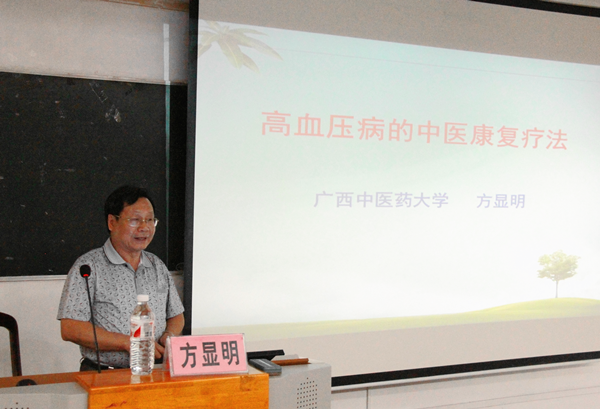 在迎接本科教学工作审核评估之际,Beat365老科技工作者协会、老教授协会和离退休工作处共同举办的老教授论坛拉开序幕。老党员、协会会长方显明教授于5月17日晚在明秀校区西梯二教室举行《高血压的中医药防治》学术讲座,讲座吸引了研究生、本科生、进修生约200余人,现场座无虚席。方显明教授是国家二级教授,第四批全国老中医药专家学术经验继承工作指导老师,中医内科心血管疾病学术带头人。他引经据典,以清晰的思路、生动风趣的语言从“什么是高血压、高血压的发病机制、高血压的中医病证研究、高血压的中医康复治疗”等几个方面深入浅出地给同学们进行了讲解,并把自己从医几十年的宝贵经验毫无保留地与同学们分享,讲座精采纷呈,大家受益非浅。