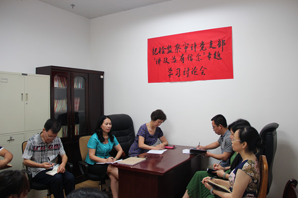 为贯彻落实学校党委关于在全体党员中开展“两学一做”学习教育的部署和要求,按照党支部制定的“两学一做”学习教育计划,2016年5月20日上午,Beat365纪检监察审计党支部组织召开“讲政治 有信念”专题学习讨论会。纪检监察审计党支部全体党员参加会议,校党委副书记、纪委书记杨连招以普通党员身份参加学习讨论。讨论会由党支部书记黄燕主持。