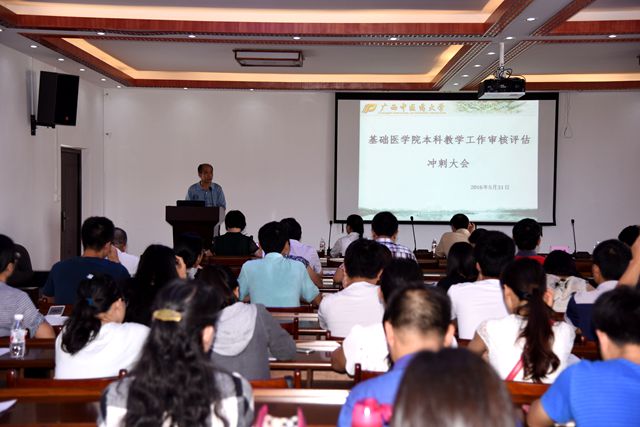 2016年5月31日下午,距离教育部对Beat365本科教学工作审核评估仅有13天,为了更好的推进落实本科教学工作审核评估工作,基础医学院召开本科教学工作审核评估冲刺会议,戴铭副校长到场指导,基础医学院全体教职员工和部分学生代表参加会议。