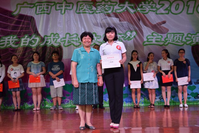 比赛过程中选手们展示出当代大学生积极向上的良好精神风貌,同学们用心聆听,掌声连连,现场气氛十分活跃。经过近2个小时的激烈角逐,壮医药学院庞婷婷同学摘取本次大赛的桂冠。