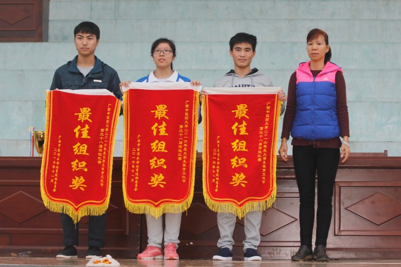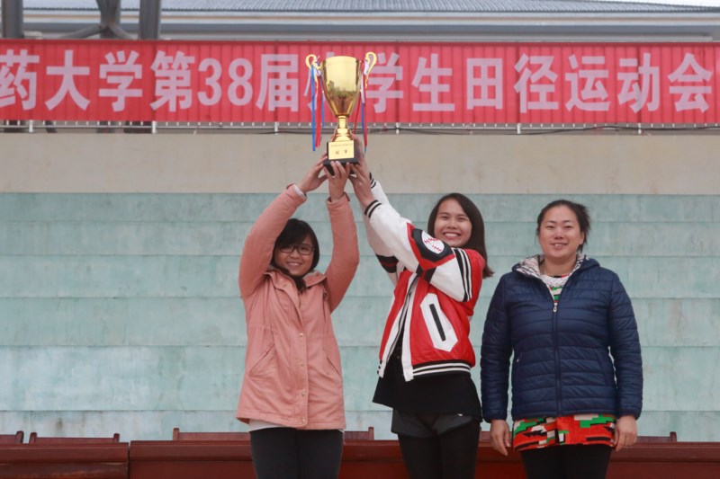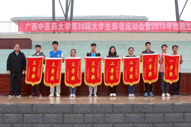 本届运动会各项比赛项目精彩纷呈,竞争激烈,成绩喜人。经过两天的激烈角逐,第三十八届田径运动会团体总分前八名为:第一名药学院,第二名基础医学院,第三名高等职业技术学院,第四名护理学院,第五名赛恩斯新医药学院,第六名瑞康临床医学院,第七名针灸推拿学院,第八名第一临床医学院。2016年度Beat365中国唯一官方网站大学生体育文化节体总分前八名为:第一名药学院,第二名高等职业技术学院,第三名针灸推拿学院,第四名基础医学院,第五名护理学院,第六名第一临床医学院,第七名壮医药学院,第八名人文社科学院。赛恩斯新医药学院,基础医学院,以及瑞康临床医学院荣获本届大学生田径运动会最佳组织奖。