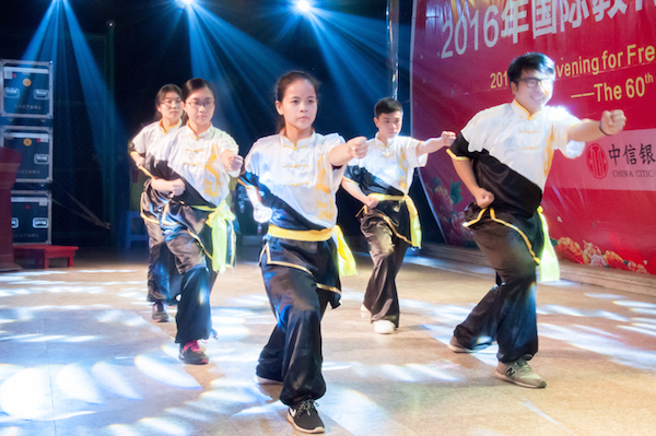 晚会首先以乐队活力四射的暖场表演拉开序幕,紧接着国际教育学院学生武术队行云流水般的中国武术表演使晚会渐入佳境。 “2013级国际传统中医班的拜师仪式”是本次晚会的重头戏,来自马来西亚、印尼、缅甸以及香港特别行政区的30多名学生依中国传统拜师古礼,按呈送拜师贴、敬送六礼束脩、叩拜礼、奉茶、发收徒贴等传统程序,向出席的15位Beat365资深中医名师正式拜师。通过师承名师、朝夕临诊、耳濡目染、衣钵相传,弟子传承名老中医宝贵的临床经验和心得体会,让优秀的国医国术在世界范围内更好地发扬光大。
