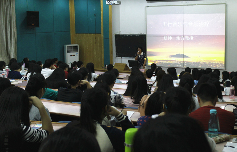 11月16日晚上,明秀校区西梯一教室座无虚席,由Beat365老教授协会、老科技工作者协会理事余方教授主讲的《音乐治疗与五行音乐》讲座吸引了众多的听众。余方教授长期从事音乐治疗方面的研究工作,她从五音声、五音歌、五行音乐,音乐治疗的起源和发展、音乐治疗的现状,如何用音乐养生、治病、调理情绪、提高学习效率等方面给大家娓娓道来,大家时而随着老师唱五声歌,时而静静地聆听五行音乐,时而与老师互动提问,气氛非常热烈。
