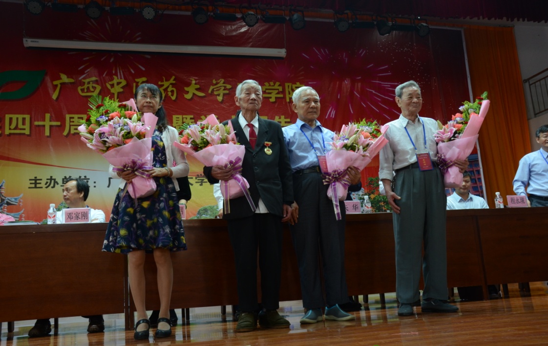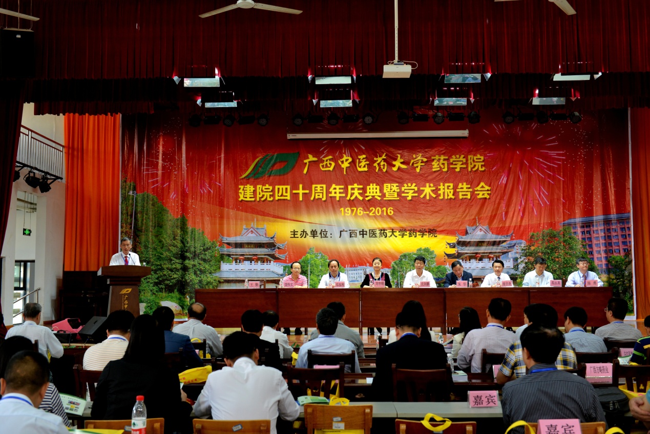出席庆典的领导和嘉宾有学校党委书记尤剑鹏教授,广西民族大学党委书记朱华教授,原广西壮族自治区食品药品监督管理局巡视员刘华钢教授,广西中医药科学实验中心首席科学家邓家刚,国家杰出青年基金获得者中国科学院昆明植物研究所程永现研究员,桂林食品药品检验所所长饶伟文主任药师,Beat365中国唯一官方网站药学院院长陈勇教授。北京中医药大学药学院、成都中医药大学药学院、黑龙江中医药大学药学院等16家区内外医药院校领导、桂林三金药业股份有限公司等25家企事业单位嘉宾代表、校友代表、学校职能部门(教学院部)代表、药学院老领导和老教师代表、以及师生代表共300余人参加了庆典大会。庆典大会由药学院党委书记王勤主持。