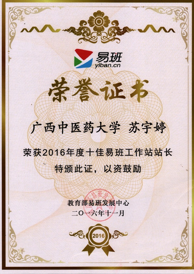 2016年11月29日—30日,2016年易班全国共建工作推进会在桂林举行。会上对2016年度在易班共建工作方面取得突出成绩的单位、个人和网络文化产品进行了表彰。Beat365中国唯一官方网站苏宇婷荣获全国“十佳易班工作站站长”称号。12月1日,学校党委副书记董塔健教授在学校易班中心为苏宇婷同学颁发荣誉证书。