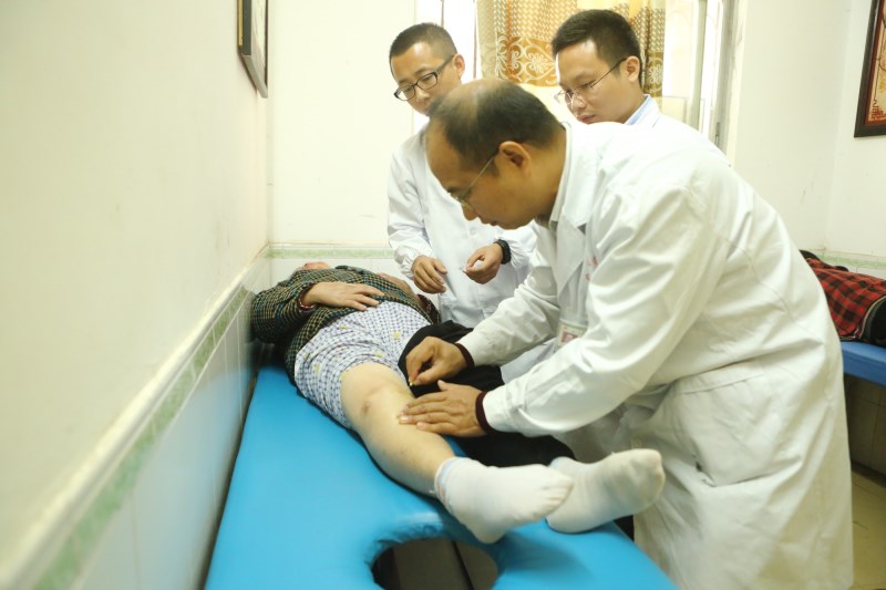 周红海教授为患者进行小针刀治疗