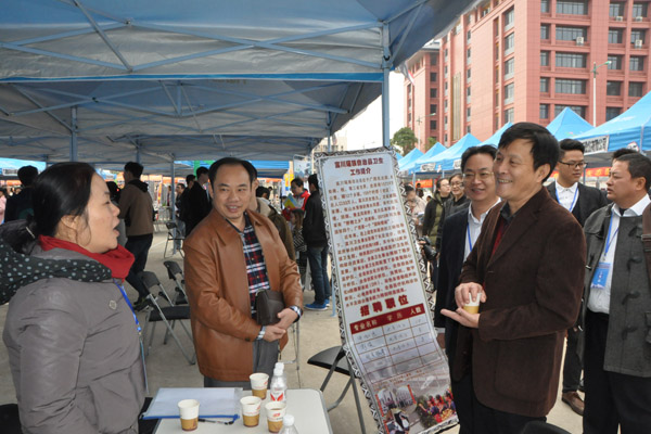 Beat365中国唯一官方网站董塔健副书记(右二)与用人单位进行亲切交流