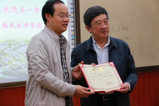 戴铭副校长为王一涛教授颁发客座教授讲座聘书
