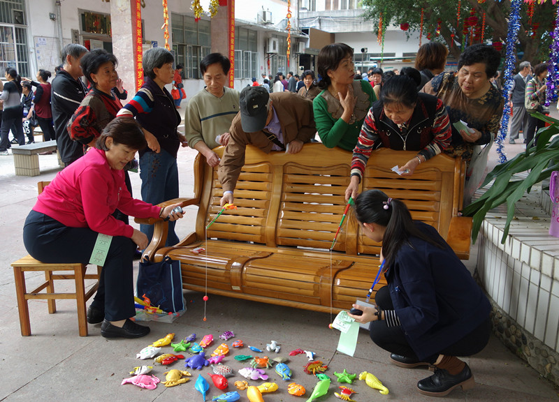 1月6日下午,明秀校区老年活动中心张灯结彩,彩旗飘扬,处处洋溢着喜庆的节日气氛。近300名离退休职工兴致勃勃地参加一年一度的迎春游园活动。在游园现场,钓鱼、套圈、夹鹌鹑蛋等12项游戏吸引着大家积极参与,75岁以上老人还可以现场参加寿星抽奖项目,让高龄老寿星们也能收获一份快乐与祝福。老同志们边参加活动边与老友畅叙友情,现场欢声笑语,其乐融融。广大离退休职工对学校关心老同志、爱护老同志、尊敬老同志的举措表示由衷的感谢。活动的开展,增进了大家相互之间的沟通、交流,达到互帮、互助、关爱的目的,真正使离退休人员老有所依、老有所乐,让他们的晚年生活更加丰富多彩。