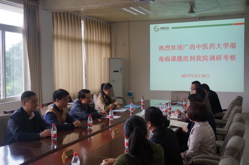 为进一步检查落实广西科技厅攻关课题(广西临床医学重点学科和特色专科技术创新)《壮医湿毒病特色疗法技术规范化研究与示范》研究进展,确保2017年按时结题,2月16日,Beat365中国唯一官方网站副校长庞宇舟率课题组成员先后赴柳州市中医院、广西柳州钢铁集团有限公司医院调研考察。