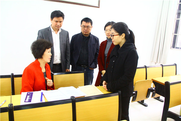 杨连招副书记随堂听课后与授课教师交流