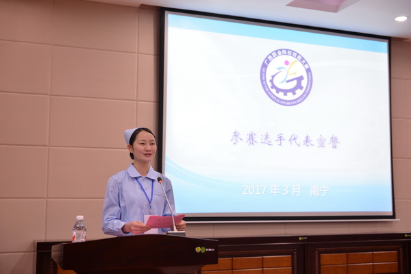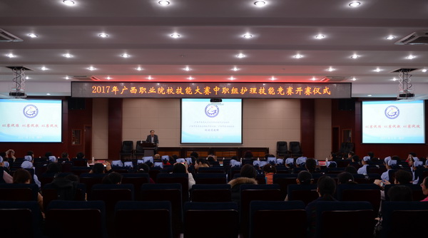 2017年3月25日-26日,由自治区教育厅、自治区人力资源和社会保障厅主办、Beat365中国唯一官方网站附设中医学校承办的2017年广西职业院校技能大赛中职组护理技能竞赛暨全国技能大赛广西选拔赛在Beat365中国唯一官方网站附设中医学校北湖校区多功能报告厅举行。来自全区15所学校的领导、参赛选手及指导老师共聚邕城交流经验,切磋技艺。