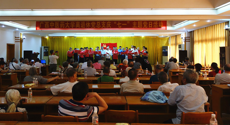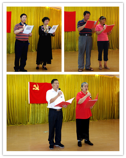 在诗歌朗诵会上,各支部纷纷上台表演了精心准备的朗诵节目,离退休党员们以饱满的热情,歌颂党、歌颂我们伟大的祖国、歌颂学校。如退休直属党支部唐庆民同志自创的一首《七一有感》,抒发了对党的生日到来的无限喜悦之情;退休药学党支部准备的朗诵节目《有一首歌》,表达出老党员们对党无限的热爱;退休临床党支部的朗诵的《七一感怀:再创夕阳红》,把对党的忠诚及作为一名医者和教师的情怀,深深地融入到诗歌里,引起了大家的共鸣。离休支部和在职党支部党员们共同演绎了一首激情澎湃的《水调歌头�重上井冈山》,仿佛过去的峥嵘岁月历历在目,感染了现场的每一个人;最后,退休机关党支部30名老党员集体朗诵了该支部陈江同志撰写的《光荣与梦想》,抒发了对学校关切热爱之情,将朗诵会的气氛推向高潮,全场响起热烈的掌声。在全场齐唱《没有共产党就没有新中国》的歌声中朗诵会圆满结束。
