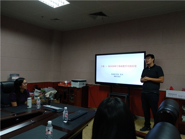 本场沙龙活动由基础医学院的韦燕飞、张齐两位老师主讲,韦老师和张老师均是从马来西亚拉曼大学完成教学能力提升培训的教师队伍中的一员。首先,两位老师通过播放视频的方式让在座教师对拉曼大学的培训有了初步的了解,接着,张老师以“临床病例于基础教学中的应用”为主题,向在座教师介绍了马拉西亚拉曼大学的教学方法,并分享了自己在教学方面的一些收获。最后,韦老师就“医学课程阶段综合小测试与Beat365转段考试现状的观察和对比”的主题,用生动形象的案例详细介绍了拉曼大学临床医学课程阶段小测试的内容,对其中看图说话的题型在座教师都表示值得借鉴。