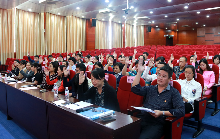 大会根据基层工会选举的要求和程序,通过了《机关一分工会委员换届选举办法》和监票人、计票人建议名单。在总监票人兰云超老师的主持下,采取无记名投票的方式,经过严格规范的投票、计票,选举产生了机关一分工会新一届工会委员(按姓氏笔画为序):叶抗、林琳、赵斌、覃姣姣、蓝开宝,选举结果将报校工会审批。