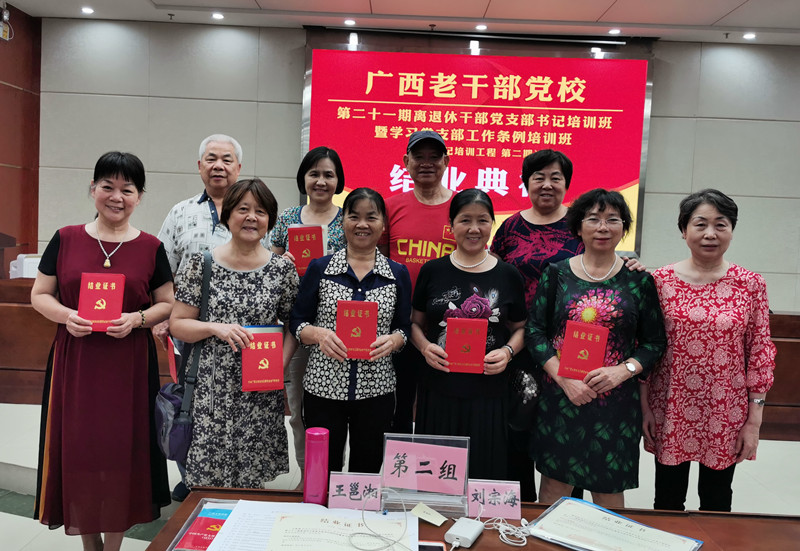 短短几天培训,大家收获颇丰。大家纷纷表示,要在学校党委和离退休党总支领导下,进一步加强离退休干部党支部建设,不断创新支部活动的新形式。围绕近期中心工作,积极开展“老书记讲精品党课"“我看新中国成立七十周年新成就”“喜庆祖国华诞、唱响壮美广西”等内容丰富,主题鲜明的活动,发扬政治优势、经验优势、威望优势,凝心聚力广大离退休党员干部,做新时代的追梦人。