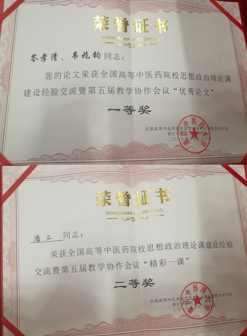 马院老师岑孝清,韦兆钧的论文获得了全国中医药院校思想政治理论课建设经验交流暨第五届教学协作会议论文评比一等奖、潘立老师在“精彩一课”教学展示中获得二等奖的好成绩。