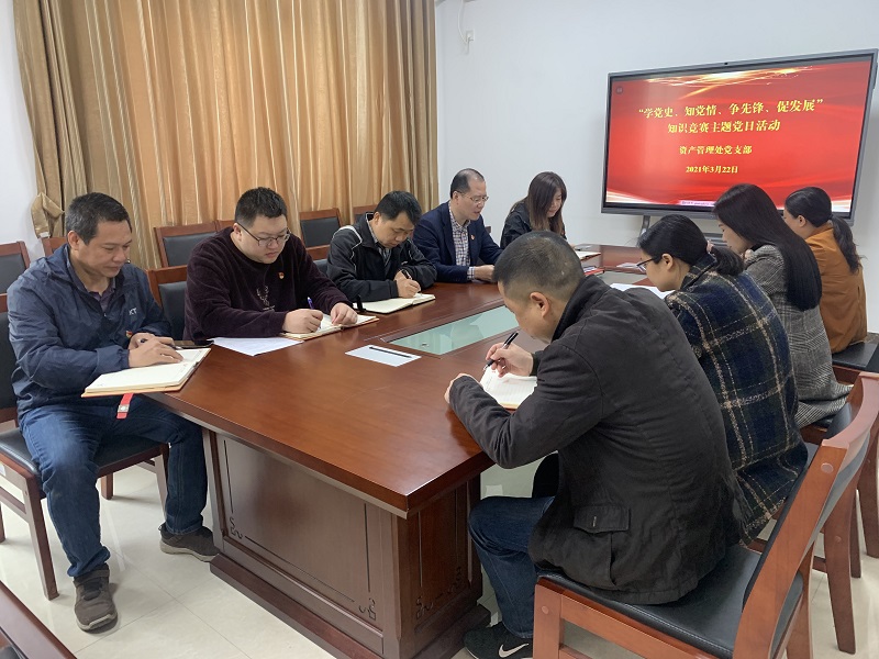 3月22日上午,资产管理处党支部开展了主题为“学党史、知党情、争先锋、促发展”知识竞赛党日活动,党支部全体党员参加。