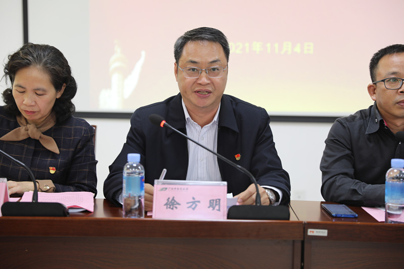 机关党委徐方明书记对近期工作进行了通报和布置。他强调,一是扎实推进意识形态工作,机关各支部、部门必须认真贯彻落实意识形态工作责任制,提高政治站位、加强学习教育、强化责任意识,推动意识形态工作有序、有效、深入开展;二是扎实推进党史学习教育,各支部要继续抓好三部简史和四史的学习,继续深入推进 “我为群众办实事”实践活动,继续营造党史学习教育浓厚氛围;三是扎实推进基层党建工作,各支部要继续推进支部标准化规范化建设,落实好“三会一课”制度,抓好党员发展、党费收缴、党员教育培训等工作;四是扎实做好安全稳定工作,坚持“预防为主,教育为先”,加大宣传和教育力度,加强隐患排查整改,及时清除各类安全隐患,全力以赴维护校园的安全稳定。