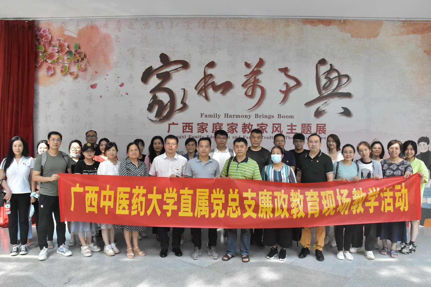 在“家和万事兴——广西家庭家教家风主题展”展厅,直属党总支全体党员及干部集体参观了“红色家风”“先贤家教”“清廉家庭”三个部分的展览,通过一个个家风故事和时代楷模光荣事迹,深刻感受到浓厚的“家国天下”情怀。通过本次廉政教育活动,达到了以德育人、以文化人、以情感人、启智润心、以俭修身、以清为美、以廉为荣的现场教学目的,鼓励全体党员和干部做好高贤大德良好品行的传承,牢记党的宗旨、初心和使命,恪守纪律规矩,常修为教之德,常思贪欲之害,常怀律己之心,永葆共产党人清正廉洁的政治本色,为推进“清廉桂中医”建设打下扎实基础。