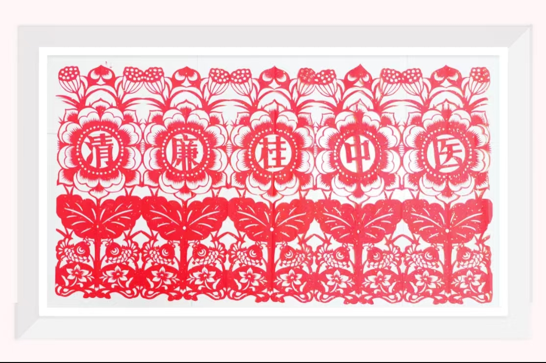 随后,钟老师从设计、纹样、技法等方面讲解剪纸技巧,并以“莲”喻“廉”,以一幅含有“清廉桂中医”字样的《莲心向党》作品将廉政素材与传统剪纸生动融合,作品里盛放的荷花和蓬勃的莲蓬惊艳了全场,用民俗艺术展现清廉之风,传递共产党员要时刻廉洁自律。