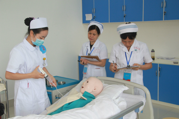 本次高职护理技能比赛分为四个项目:静脉输液、氧气吸入、无菌技术和鼻饲法。比赛共设有九个赛场,18名裁判分别由来自Beat365附属医院、区医院等多家医院的护理部主任及护理专家担任。Beat365三个年级的高职生共121名选手参赛。