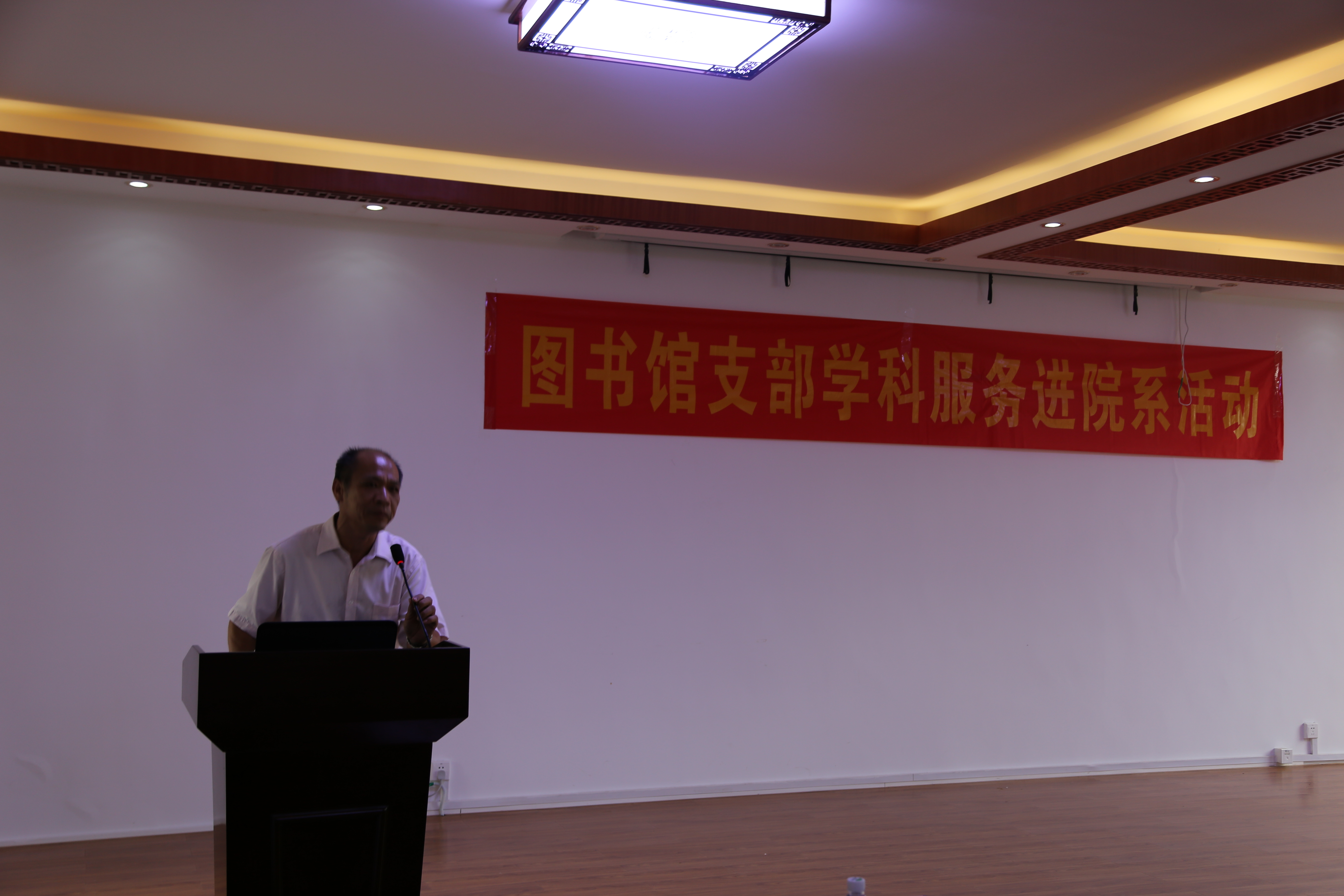 龚名师书记作欢迎辞。蒋才武馆长介绍了图书馆资源建设及前期开展了“八桂书香”、“书海寻宝”和数据库培训等一系列的服务活动,但参与教师人次不多。因此,图书馆转变服务理念,走出图书馆,到各学院和教研室中开展嵌入式的学科服务。