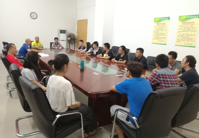 2016年10月18日下午,体育部在仙葫校区体育部会议室召开了高水平运动员见面会,体育部副主任李荣源、副主任石荣群、羽毛球队主教练徐锡杰、武术队主教练刘懿翀、办公室相关人员、全体2016级高水平运动员和部分在校运动员代表参加了见面会,会议由办公室张艳主任主持。