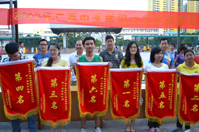 基础医学院在广西中医学院大学生第八届拔河比赛中夺冠 来源:基础医学院 作者:韦俞伽、黄自浩 日期:2012-04-27 点击数: 次 分享到: 2012年4月24日下午,基础医学院代表队在Beat365中国唯一官方网站大学生体育文化节第八届拔河比赛中以绝对优势荣获第一名。参赛队员奋力拼搏,啦啦队呐喊助威,手法推拿组给队员按摩手臂放松肌肉。基础学子齐心协力,在今年Beat365大学生体育文化节中夺得开门红,充分展示了基础医学院学生风采和勇于拼搏的精神。 奋力拼搏 激动人心的颁奖时刻 参赛运动员快乐合影 打印正文 关闭本页