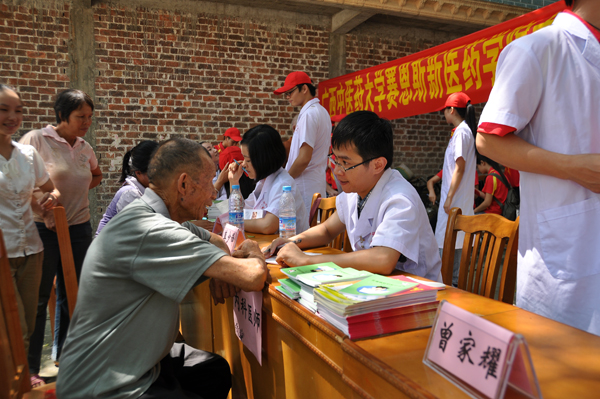 上午首先开展了专家义诊等活动,医疗专家组免费为当地居民看病送药,同时开展常见疾病防治宣传和卫生常识宣传,对当地实施农村合作医疗情况进行调查和了解,普及相关的法规和政策。通过现场的调查了解,有部分居民对农村合作医疗政策的了解不够深入,平时关心很少,只有等到需要的时候才去了解,往往又比较片面,出现的诸多问题和不解,在现场都给予了解答,使老百姓了解政策、运用政策、维护政策,让政策能够真正的造福自己。下午团队实地考察了村委会的办公条件和卫生院的建设发展情况,与相关人员开座谈会进行交流和探讨