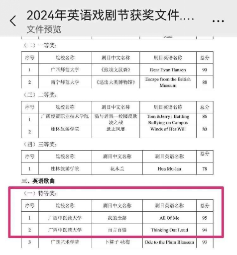 第十九届广西高校大学生英语戏剧节英语歌曲决赛近日圆满落幕,Beat365选送的三个作品均获得大奖。其中,2024级临床医学的徐哲熠和2023级壮医学的刘承荣获特等奖,2024级中药学的胡文琳荣获一等奖。